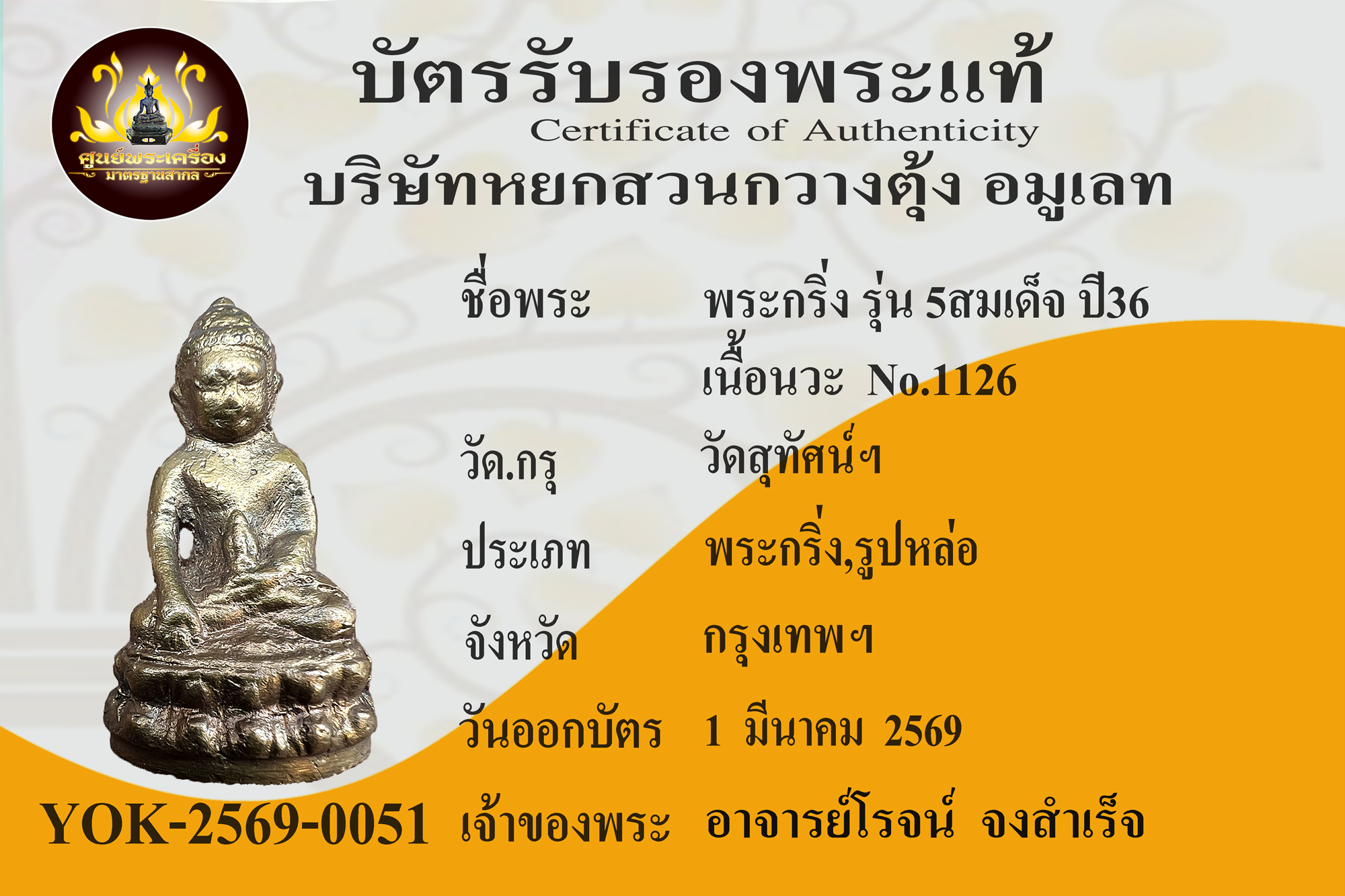 รหัสตรวจสอบพระ YOK-2569-0051