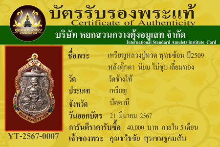ชื่อพระ เหรียญหลวงปู่ทวด พุทธซ้อน ปี 2509 หลังตุ๊กตา นิยม ไม่ชุบ เลี่ยมทอง